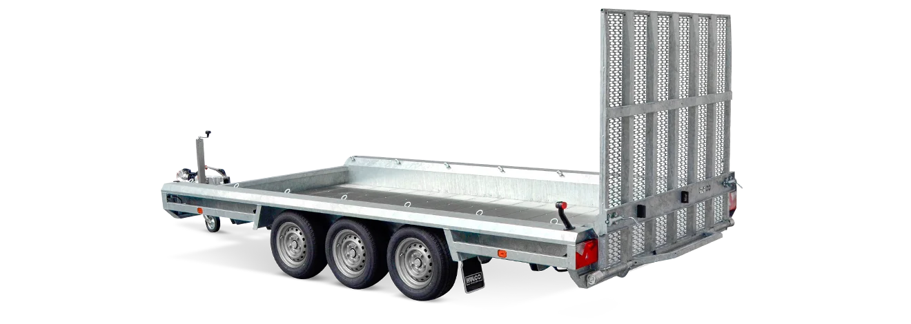 Robuste portillon arrière avec support Châssis robuste avec de nombreux traverses Angle d’inclinaison minimal Le tridem Terrax de Hulco est la meilleure option pour transporter des excavatrices, des cueilleuses de cerises, des chargeuses, des machines horticoles et bien plus encore. Son plancher bas, son robuste portillon arrière, son support pour conteneurs et ses nombreuses positions d’attelage font du Terrax la remorque idéale pour les vrais professionnels.