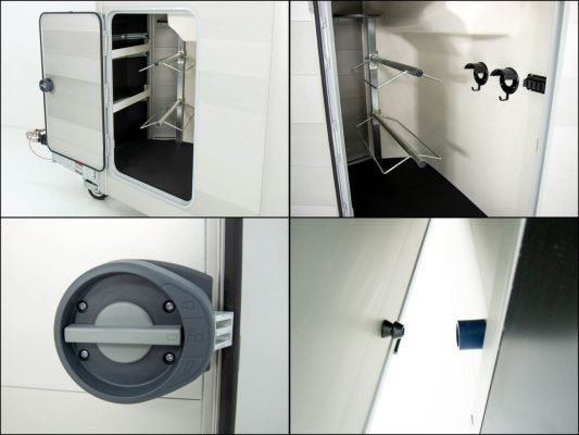 Grâce à leur intérieur lumineux et aéré, les vans Ifor Williams semblent accueillants et confortables. Cela facilite non seulement le chargement, mais offre également au cheval le confort dont il a besoin pour rester plus longtemps sur la remorque stationnaire. Sur les remorques de la série HBX, la partie supérieure de la porte avant peut également s’ouvrir comme un box afin que le cheval puisse voir son environnement. Astuce pour les journées chaudes : la trappe de toit réglable de la série Ifor Williams HBX assure une circulation d’air agréable lorsque la remorque est garée.