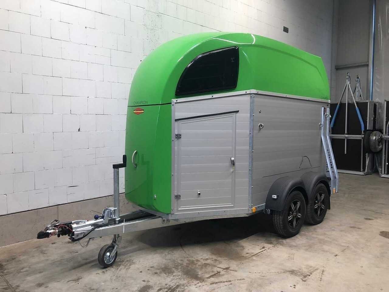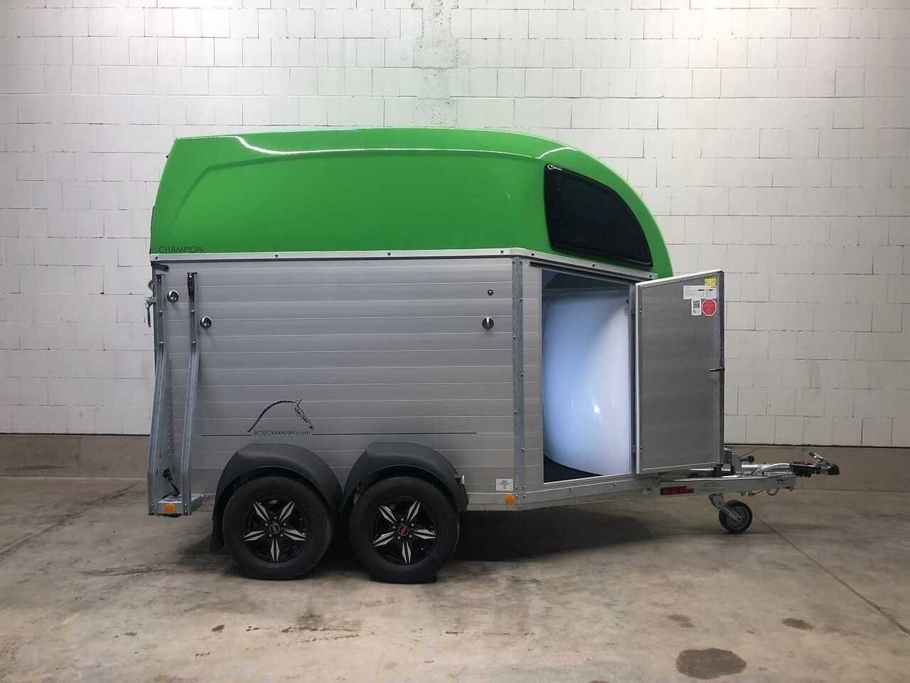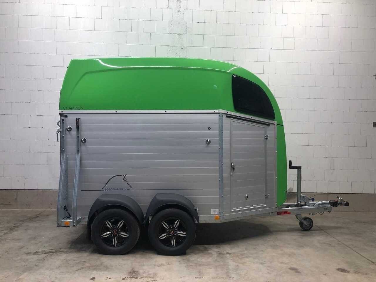 Böckmann Champion R – 2 vans pour chevaux – entièrement en aluminium avec proue en polyester et capot en vert jaune frais
