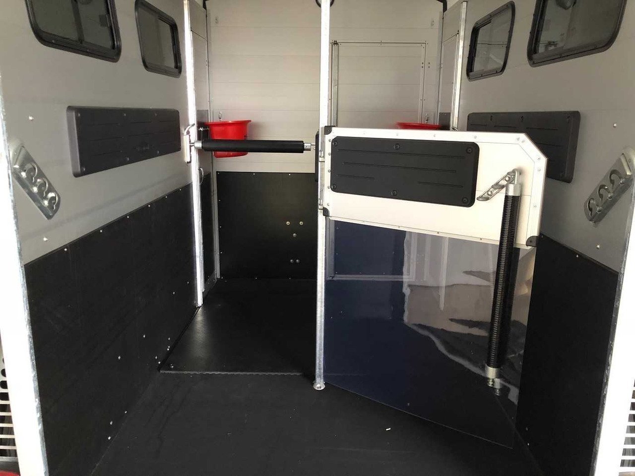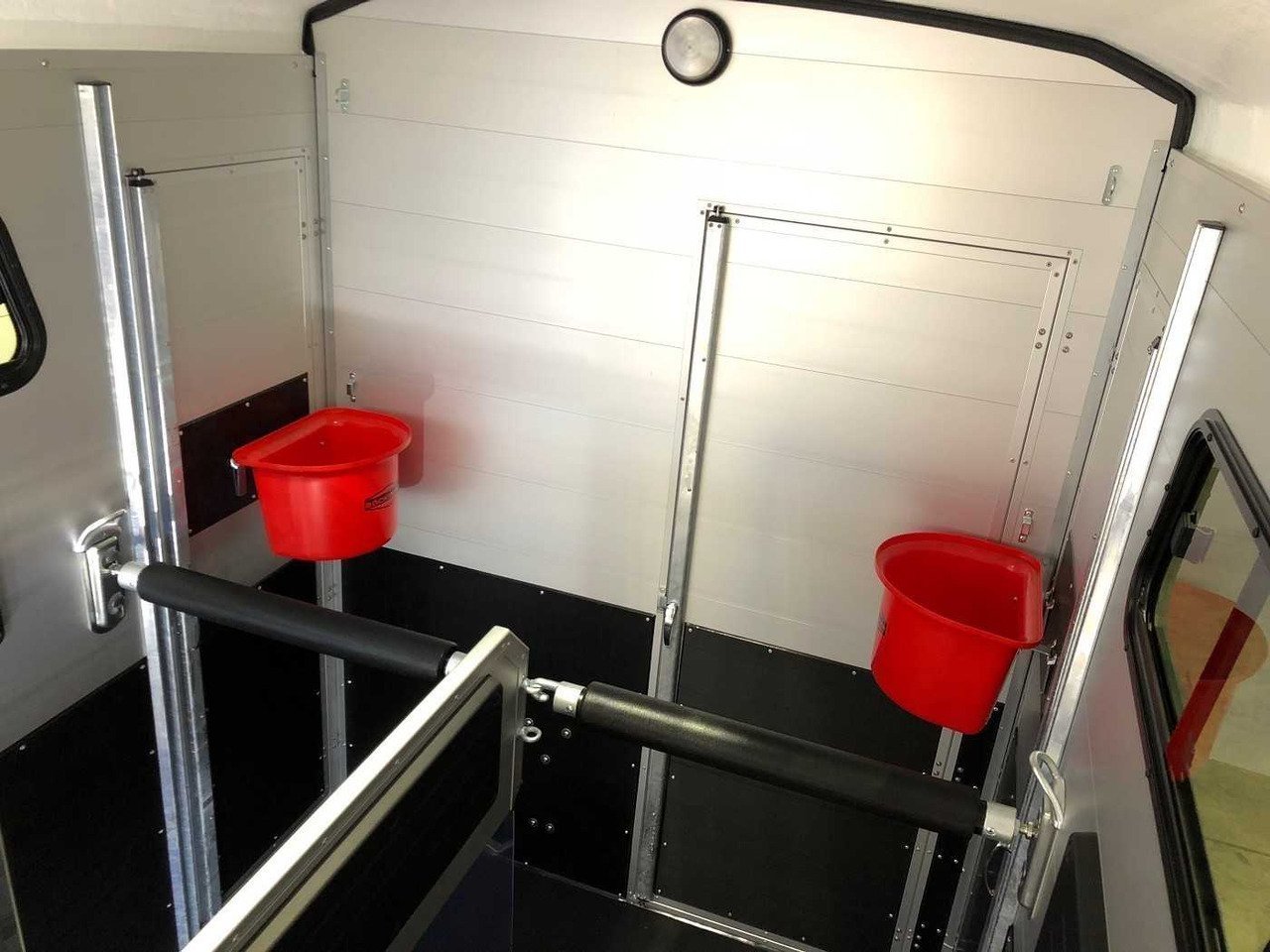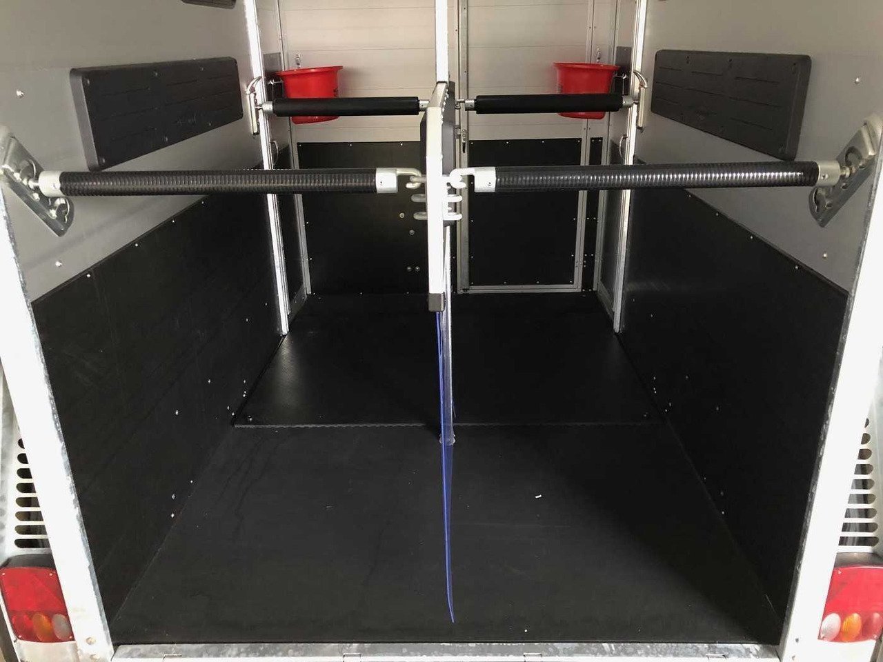 – Caoutchouc sur la porte de chargement avec marchepieds intégrés et arrêts latéraux garantissant une adhérence optimale pour vos chevaux