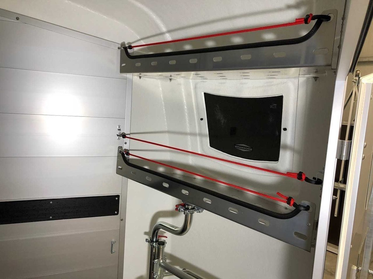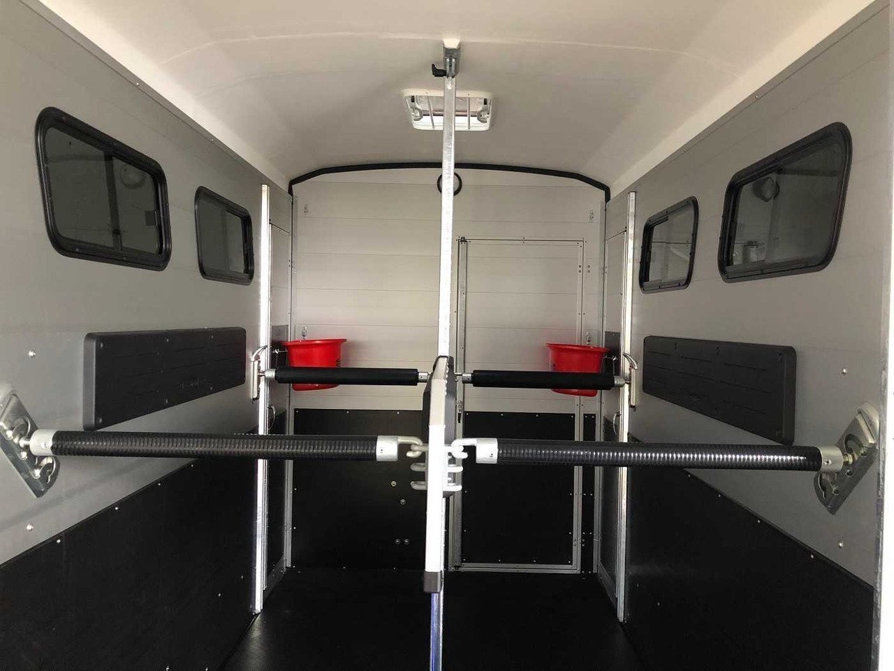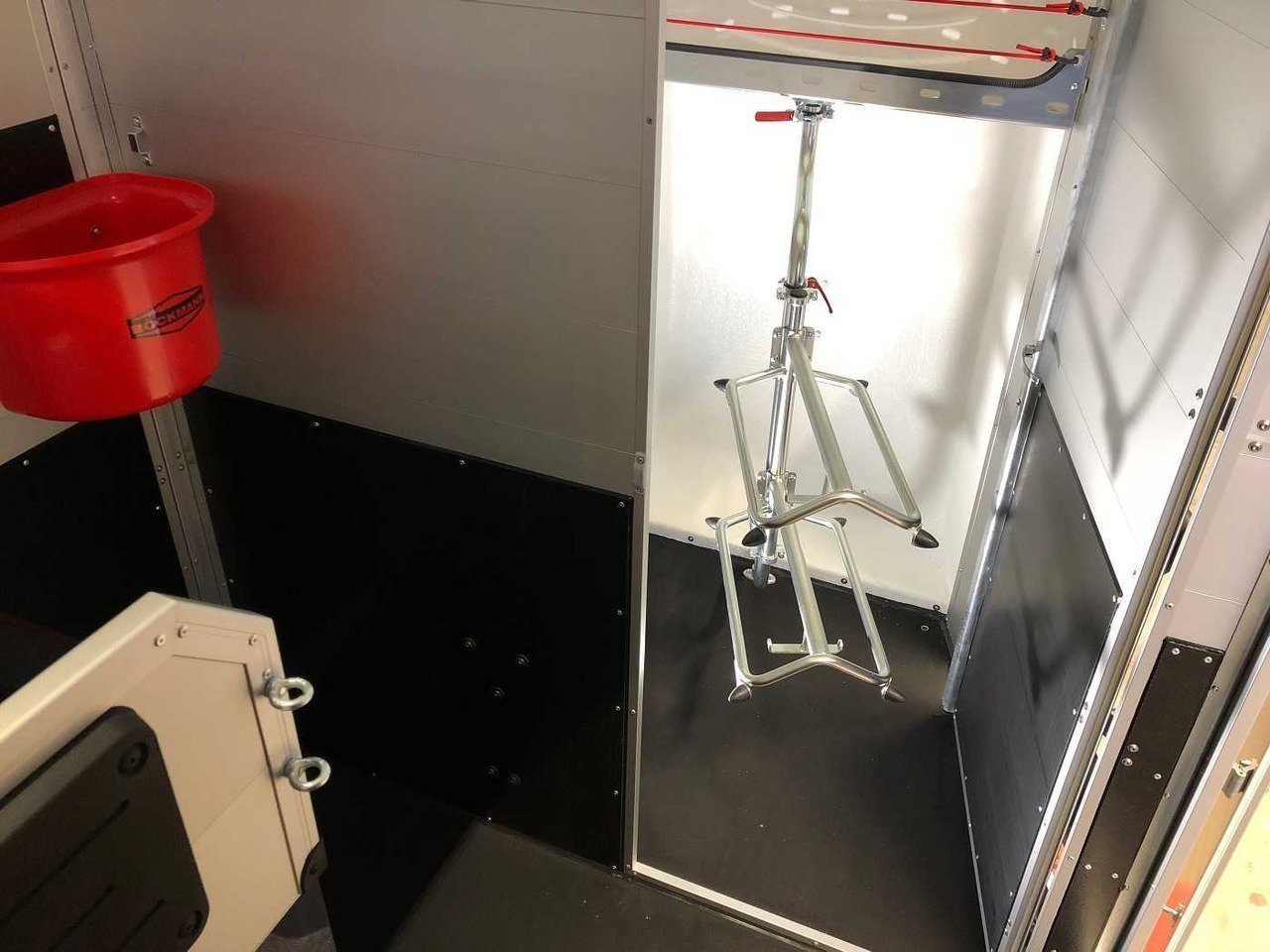 – Caoutchouc sur la porte de chargement avec marchepieds intégrés et arrêts latéraux garantissant une adhérence optimale pour vos chevaux