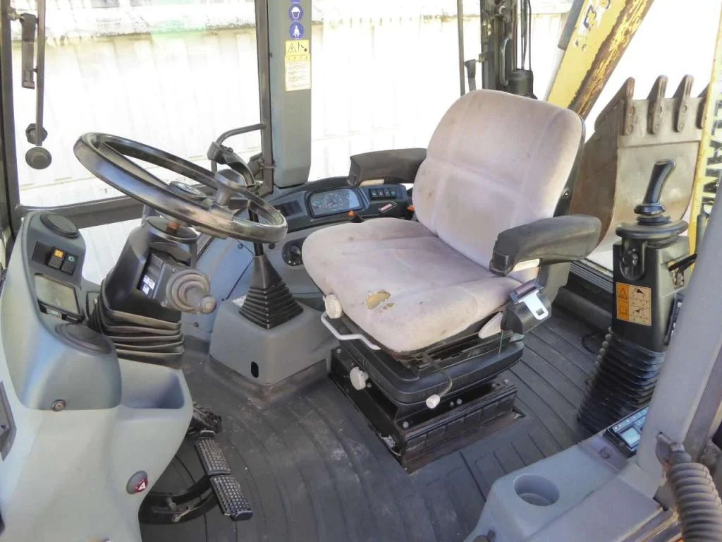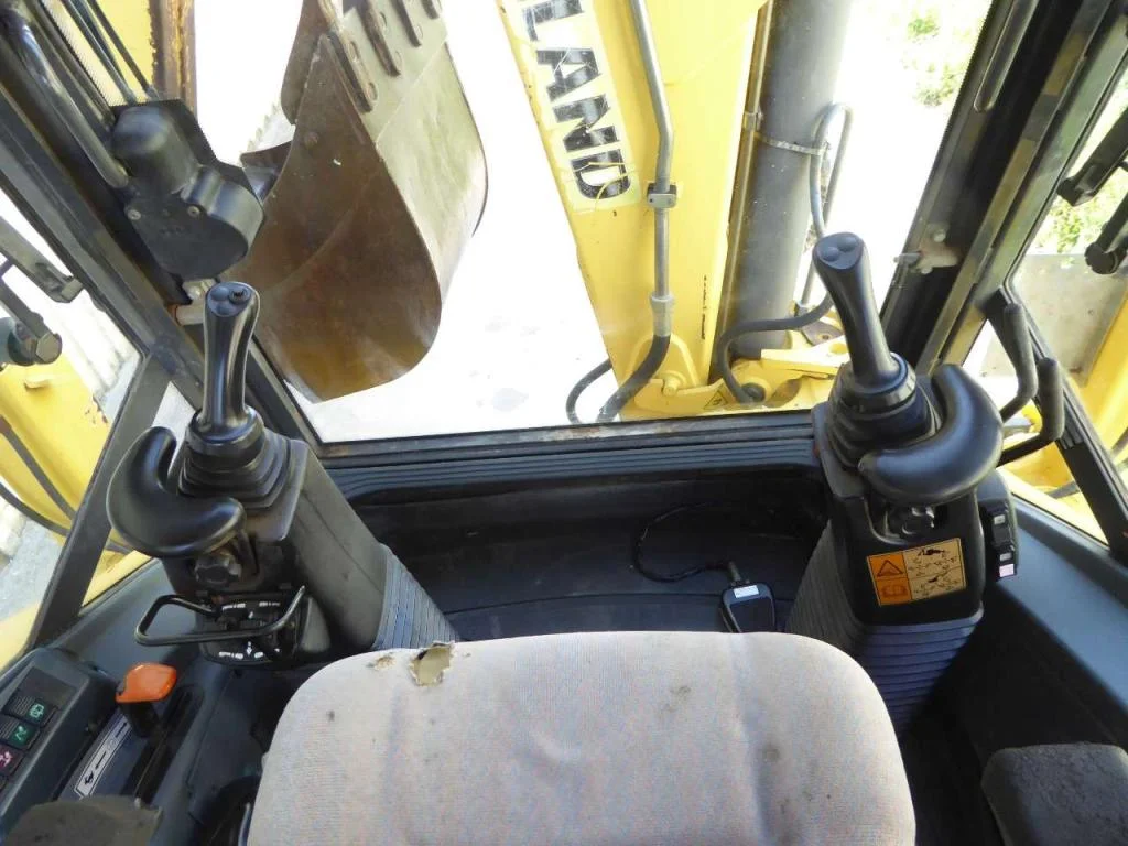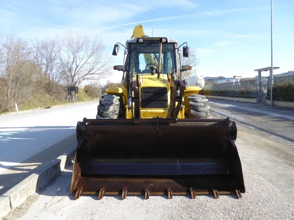 Description : Tractopelle New Holland LB115 B, année 2005, 3081 heures de travail, poids 9470 kg, moteur CNH 4 cyl. turbo 111 hp, servocommandes joystick, ligne marteau, transmission powershift, godet de chargement 4×1, n. 01 godet de terrassement 600 mm, fourches, cabine fermée avec chauffage, climatisation opérationnelle.