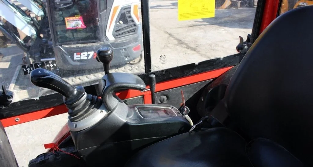 Matériel d’occasion doté de : Bras de torsion à la cabine, trajet rapide et lent, cabine chauffée, attache rapide, verrouillage de sécurité sur l’actionneur.