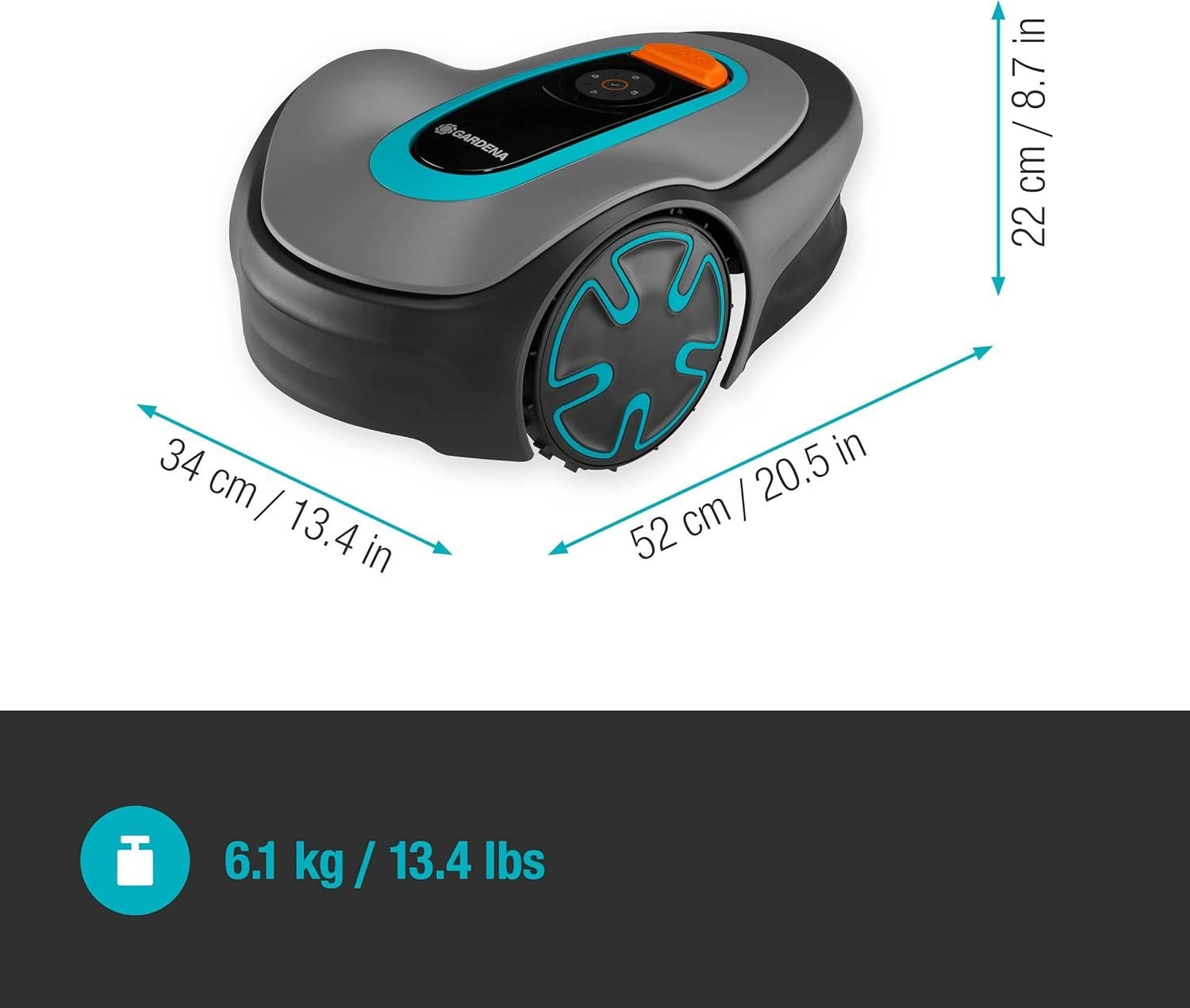 - Robot compact et maniable, très performant même sur les pelouses complexes.